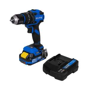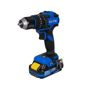 Taladro percutor inalámbrico Elite de 21V con motor brushless, diseñado para trabajos de perforación, atornillado y rotopercusión en madera, metal y mampostería.; Incorpora mandril metálico de 13 mm, torque máximo de 60 Nm y dos rangos de velocidad que permiten un control preciso según el tipo de aplicación.; Su diseño inalámbrico brinda mayor movilidad y facilidad de uso en espacios elevados o sin acceso a red eléctrica.; Incluye una baterías de ion-litio de 2.0 Ah y cargador de 2,4 Ah para un trabajo continuo y eficiente.